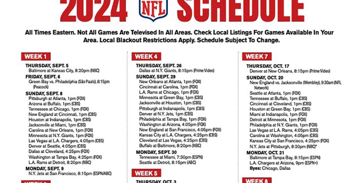 As the NFL schedule presents an exciting lineup this week, fans will not want to miss a single moment. With crucial matchups, player performances, and potential playoff implications, the stakes are higher than ever. Viewers can prepare for a week filled with thrilling moments and unforgettable games. For those looking to catch the action live, be sure to check local listings for broadcast details and times. With the season nearing its midpoint, each game is a step closer to the ultimate goal of the Vince Lombardi Trophy.