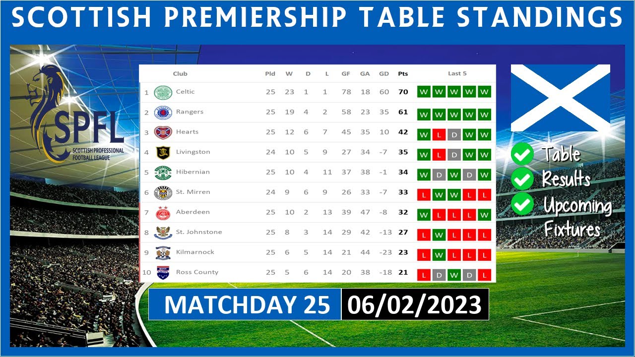 Introduction The Scottish Premiership, often referred to as SPFL (Scottish Professional Football League), is the top tier of professional football in Scotland. The SPFL table is a crucial point of reference for fans, analysts, and teams alike, reflecting the ongoing performances and standings of clubs throughout the season. With the 2023-2024 season underway, the SPFL
