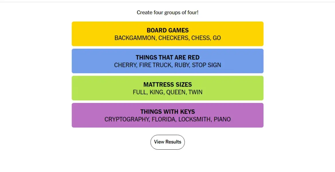 As of today, here are the latest answers for the NYT Connections puzzle:
